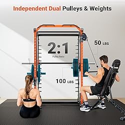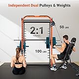 YOLEO Smith Machine & Squat Rack Combo, Multi-Functional Power Racks with Adjustable Width & Pull-Up Bar, Cable Crossover Power Cage, Independent Dual-Pulley System for Home Gym Garage Basement