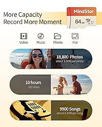 Micro SDXC 64GB Memory Card, MindStor 90MB/s Read Speed TF Card with Adapter, U1, A1 Rated, HD Video Support, Waterproof, for Security Camera, Dash cam, 1 Pack