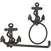 2 Pcs Vintage Cast Iron Nautical Theme Anchor Towel Holder and Toilet Paper Holders Solid Coastal Towel Rings Bathroom Kitchen Decor for Hanging Toilet Paper Wash Cloth
