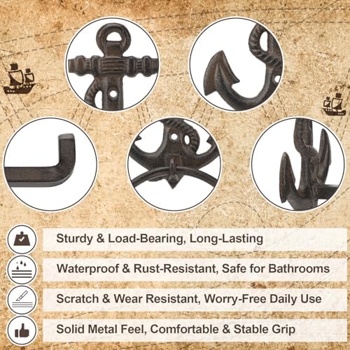 Features: Vintage nautical decor: The detailed anchor towel holder features a classic nautical sea design that instantly evokes a relaxing, seaside atmosphere. It's more than just a set of nautical towel hooks. It's a decorative element that enhances the overall aesthetic appeal of your bathroom or kitchen. Heavy duty cast iron construction: This anchor towel holder is engineered to be heavy and steadfast, capable of supporting thick, wet towels and full rolls of paper towels without wobbling. The material ensures resistance to wear and tear, making this nautical paper towel holder a dependable and practical addition to your home. Specifications: Material: cast iron Color: rust Size: Towel Holder: 4.61 x 8.66 x 1.02 inches/ 11.7 x 22 x 2.6 cm, 4.61 inches/ 11.7 cm in outer diameter Toilet Paper Holder: 9.17 x 4.02 x 2.24 inches/ 23.3 x 10.2 x 5.7 cm Package includes: 1 x Towel Holder 1 x Toilet Paper Holder Notes: Manual measurement, please allow slight errors on size. The color may exist a slight difference due to different screen displays.