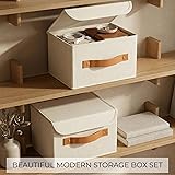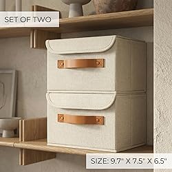 Organized Havens for Life’s Treasures: Smart, stylish, and dust-protected! ZICOTO’s decorative storage boxes with lids keep your keepsakes, photos & more neatly stored with secure hook-and-loop fasteners - perfect for anyone who loves tidy, beautiful spaces Set of 2 Versatile Boxes: Two decorative boxes with lids (9.7x7.5x6.5”) ready to organize clothes, shoes, scarves, DVDs, or photo albums. Ideal as photo boxes storage or a memory box for keepsakes - versatile for every room and need Premium Look & Feel – Built Strong, Stays Strong: The decorative storage boxes hold their shape with durable PP boards and an outer fabric of soft polyester. Fold flat when not in use - your space-saving superheroes with timeless charm and long-lasting strength Style That Fits Anywhere: Chic Ivory color, clean lines, and classic design make the decorative box set blend into any home - on shelves, in closets, nurseries, or laundry rooms. Pretty and functional keepsake boxes with lids for those who value both organization and aesthetics Smart Easy-Grab Design: Sturdy PU leather handles make the lightweight keepsake box easy to move anywhere. Ideal for rotating seasonal items or storing memories. Simply wipe the photo storage box clean with a damp cloth - always fresh, always elegant