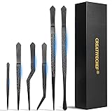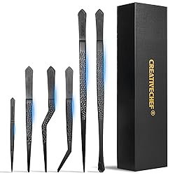 CREATIVECHEF Culinary Tweezers | High Precision Titanium Tweezer Set | 6pcs Cooking Tweezers in a Beautiful Box | Cooking Decorative Chef Tools | Food Styling | Plating & Cooking | Lightweight version