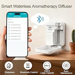 Pure Fragrance, No Water Needed:Enjoy pure essential oil diffusion without adding water. This waterless scent diffuser keeps your air dry—no mist, no residue, no humidity. Perfect for families with kids or pets, it delivers clean and consistent aromatherapy while maintaining a fresh, hotel-like atmosphere at home. A true cold air aroma diffuser for those who value relaxation, luxury, and safety in every breath. Extra-Large Coverage & Extended Runtime:Designed for large spaces, this aroma diffuser for home and business can scent up to 2,500 sq.ft with long-lasting fragrance for up to 60 days per 400ml refill. Enjoy effortless aromatherapy in your home, spa, salon, or office. Fewer refills, more serenity—let every room stay welcoming and beautifully scented all day, every day. Dual Control System:Manage your scent experience your way. Connect via Bluetooth to set schedules, adjust fragrance intensity, or control running times directly from your phone—or use the built-in button panel for quick manual operation. Whether you prefer morning energy or evening calm, this smart aroma diffuser adapts to your lifestyle with precision and ease. Modern Design:Flexible installation for every style. Use it as a desktop diffuser for easy access or mount it on the wall for a sleek, space-saving look. Its minimalist design blends with any décor—modern, classic, or luxury hotel style—making it ideal for both residential and professional environments. Elegant form meets powerful fragrance diffusion. Ultra-Quiet & Family-Safe:Enjoy tranquil aromatherapy with whisper-silent operation. No dripping, no water noise—just smooth, consistent fragrance. Built with safety and comfort in mind, it’s ideal for children, pets, and light sleepers. A luxury scent diffuser that transforms your space into a calm retreat, perfect for bedrooms, offices, and relaxation zones.