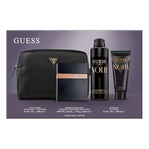 Guess Seductive Noir Men/Homme Eau de Toilette 4 Piece Gift Set - Cologne Spray 3.4 Fl. Oz., Deodorizing Body Spray 6.0 Oz., Shower Gel 3.4 Fl. Oz., & Pouch