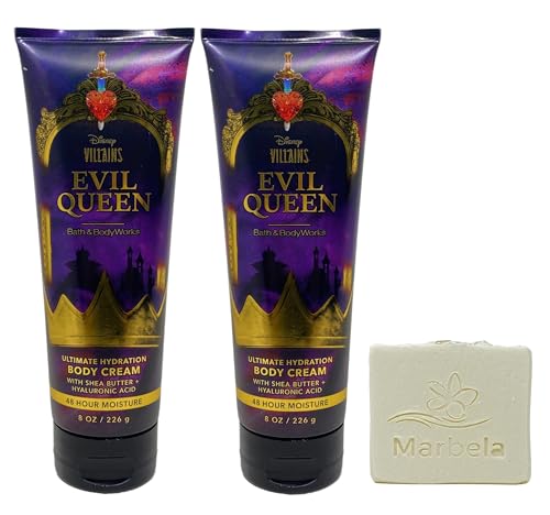 - Bath & Body Works Evil Queen Body Cream Set with a 4 oz Marbela Natural Oats Bar Soap (Soap May Vary).