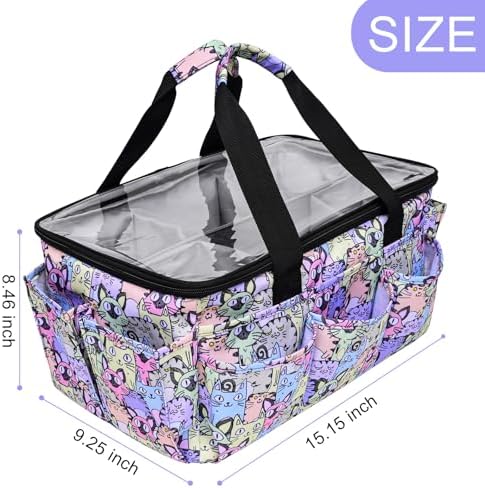 Multi-Functional Tote Craft Bag Desktop File Folder Carrying Bag With Pockets For Art,Craft,Sewing, Travel, Daily Use,Office (Cat)