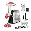 - Multifunctional meat grinding feature: This meat grinder can not only make minced meat but also different types of sausages and kubbe. It includes 3 stainless steel cutting plates for coarse, medium, and fine grinding of meat, 3 sizes of sausage stuffing tubes and adapter, and 1 kubbe attachment. You can prepare the most mouth-watering meat pies, hamburgers, meatballs, sausages, and more to meet your various needs.