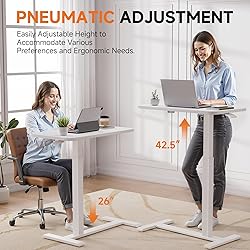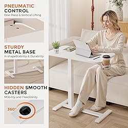 - COMHOMA Adjustable Overbed Bedside Table with Wheels, Pneumatic Mobile Rolling Laptop Desk, Height Adjustable Standing Desk Bed Table for Hospital and Home Use (28" W x 16" D, White)