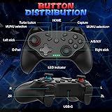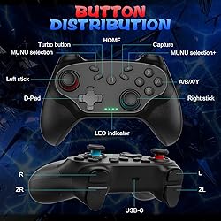 🎮【Compatible with Nintendo Switch】PERFECT COMPATIBILITY: Wireless controller is fully compatible with Nintendo Switch/Switch 2/Switch Lite/ Switch OLED /Windows PC and perfect support Nintendo and video games.(Note: This function can be used to wake up the original Switch, but not the second generation.) 🎮【ENHANCED GAMING EXPERIENCE】: Enjoy an immersive gaming experience with built-in dual motion motors and TURBO function. Choose from 3-level turbo speeds (8, 15, or 25 rounds/second) and the automatic shooting function for precision gameplay. The latest motion sensing technology and feedback technology ensures rapid response to movements. 🎮【WIRELESS AND RELIABLE】: Our high-performance wireless technology ensures a reliable signal within 10 meters, with strong anti-interference capability. Equipped with 4 LEDs indicating functions and controller buttons, this controller also boasts an excellent dual analog joystick design for seamless gameplay. 🎮【EXCELLENT HAND FEELING】: The wireless controller is built with ergonomic and lightweight construction, make it comfortable even for long hours of continuous play. The gamepad comes with non-slip design, which will never slip off even if your hand sweats during intense gameplay. 🎮【Long battery life】: The switch pro controller f with 1000 MAH large capacity battery, but it just need 2-3 hours to charge fully. Switch controllers pro can run for 10 hours, make sure you can enjoy games longer without interruption.