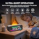 - Transform your space with our fireplace diffusers for essential oils, a multifunctional device that combines the cozy charm of a flame with modern smart features. This flame diffuser humidifier not only adds a realistic fire effect to your home or office but also provides ultrasonic humidification, helping to maintain comfortable air quality. Enjoy your favorite music with the built-in Bluetooth fire flame diffuser speaker. The diffuser’s music-synced light mode allows the 7-color ambient flame to dance to your tunes, creating a relaxing and immersive atmosphere. Perfect for bedrooms, living rooms, yoga studios, or office spaces, this colorful fireplace diffuser elevates both ambiance and mood. Stay on schedule with the integrated multifunction clock and alarm. You can wake up gently with mist, light, or sound, making the fireplace oil diffuser both a decorative and practical bedside companion. The real-time humidity display helps you monitor indoor air, while the 400ml water tank provides up to 12 hours of continuous mist without constant refills. Safety and convenience are top priorities. The fireplace diffuser with remote lets you adjust light modes, mist intensity, and music settings from across the room. Auto shut-off activates when water runs low, ensuring worry-free overnight use. With ultra-quiet operation under 30dB, this fire diffuser won’t disturb sleep or work. Whether used as a fake fireplace, aromatherapy essential oil diffuser, or ambient flame humidifier, this versatile flame diffuser brings warmth, style, and relaxation to any room. It’s also an ideal gift for friends, family, or loved ones, combining the beauty of a fireplace with the benefits of aromatherapy, humidification, and music in one elegant device.