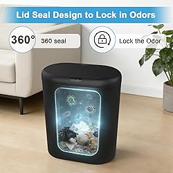 Quick & Hands-Free Automatic Sensor:Enjoy effortless disposal with advanced motion detection. The lid opens within 0.1 seconds when hands or objects are within 30 cm, and closes automatically after 5 seconds—keeping germs away and maintaining cleanliness. Waterproof & Humidity-Resistant Design: Built with IPX5 waterproof technology, this trash can is fully protected against water and moisture. Perfect for bathrooms, kitchens, and other damp environments without risk of damage. Space-Saving & Stylish Slim Profile: Measuring 10.04”L x 6.89”W x 13.39”H, the 4-gallon slim design fits easily in tight spaces like next to the toilet, under the sink, or in office corners. Its modern look blends seamlessly into any room. Quiet Operation & Flexible Use: The lid opens and closes silently, avoiding disturbance. Choose from multiple activation methods: hand-wave sensing, knee-sensing, or a gentle press on the top for added convenience in any scenario. Secure Bag Holder & Easy to Clean: A detachable inner fixing ring keeps garbage bags securely in place without slipping. Made of smooth, durable ABS+PP plastic, the surface wipes clean easily and resists stains and odors for long-lasting hygiene.Please install 2 AA batteries (not included) and put on a garbage bag following the steps to ensure the normal operation of the trash can