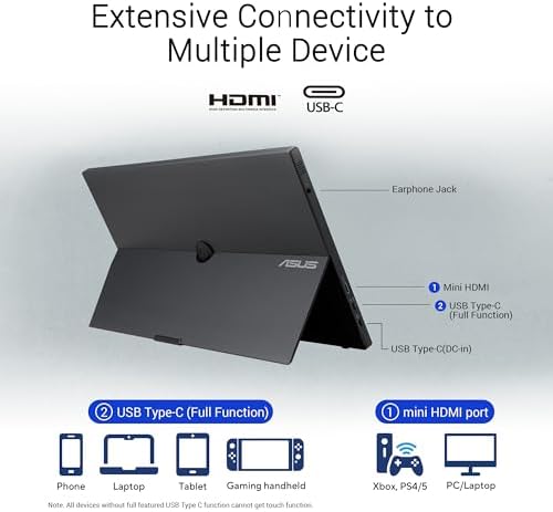 ASUS ZenScreen Touch 16” USB-C Portable Monitor (MB16AMTR) - Full HD, IPS, Built-in Battery, Kickstand, Tripod Socket, Eye Care, Compatible with Laptops (Renewed)
