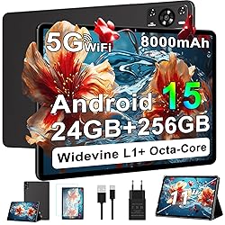 【FAST RESPONSE & 11-inch Large Screen】The 2025 latest 11-inch Android 15 1280X800 resolution IPS HD Touchscreen tablet comes with 24GB ( 8GB Original + 16GB Virtual ) RAM, 256GB ROM and Octa-Core high-performance processor that ensures fast and smooth operation. Perfect for working, reading, studying and entertainment. 【8000mAh LARGE BATTERY】The tablet has a 8000 mAh battery of continuous use, making it easy to use outdoors or on the go. No need to worry about the battery while you are traveling on the way . 13MP+5MP Dual cameras take great photos and video chats. 【Compatible with Widevine L1】You can watch Amazon Prime Video, Disney+, Hulu, and more in high quality with brilliant Watching Experience. The GMS Certified latest Android 15 Tablet, with basic Google apps already on and without bloatware. Get rid of unexpected ads and download apps from Google Play, such as SKYGO, YouTube and more. 【2.4G/5G Wifi & BLUETOOTH5.0 】Easily connect with incredible and reliable speeds. Easily browse Internet, Play game and pair Bluetooth 5.0 - Comes with free screen protector. You will love & enjoy this fastest internet tablet . 【Additional features】Parental control helps children manage their time, balance learning and entertainment, and develop good online habits. Android 15 tablet also supports face unlock, eye protection mode, 3-finger smart screenshots and more to make the tablet experience even better. In addition, we provide you with two year of replacement service, as well as 24 hours of dedicated customer service and tablet technical support.