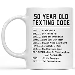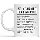 Funny 50th Birthday Mug 50 Year Old Texting Code – Gag Gifts for Men Women Seniors, 50th Birthday Gifts for Dad Mom Grandpa Grandma, Retirement Gift Joke 1975 Cofee Mug 11oz Ceramic White Novelty Cup