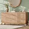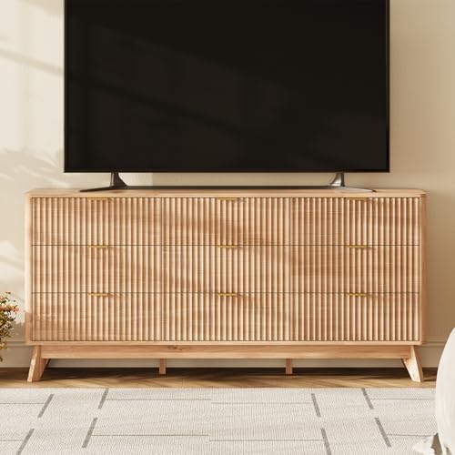 63'' Wide 9 Drawers Dresser for Bedroom, Modern Fluted Chest with Arc Corners, Large Wooden Dresser TV Stand, Wood Closet Clothes Storage Organizer for Living Room, Natural Wood