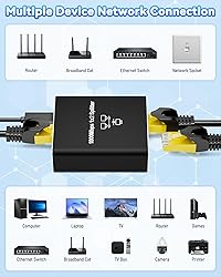 - Easily expand your wired network with this Gigabit Ethernet Splitter Bundle, including 1-to-2 and 1-to-3 RJ45 splitters plus two 6.6ft Cat6 Ethernet cables. Perfect for home, office, or gaming setups, this bundle allows multiple devices to share a single Ethernet connection while maintaining high-speed 1000Mbps performance. Ethernet Splitter Compatible with Cat5, Cat5e, Cat6, Cat7, and Cat8 cables, the splitters include USB power cables and LED indicators for stable connections and easy setup. Ideal for routers, switches, computers, TVs, set-top boxes, and gaming consoles, this multi-port ethernet adapter bundle provides an all-in-one solution for wired network expansion.
