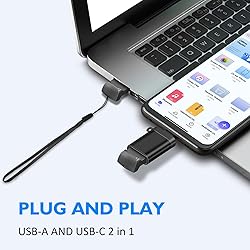 SMALL & COMPACT DESIGN: Highly textured metal body, thin and tiny size, only 0.75*0.47*0.28 inches. The small flash drive 64 GB can remain connected to our laptops without causing any obstruction HIGH PERFORMANCE & DURABLE: The 64GB MINI USB drive is made of a stable A+chip, and has been double-tested by our H5 quality-checking device before shipping, no extra software required STABLE AND FAST SPEED: The exFAT32 mini flash drive features a USB 3.2 Gen1 interface, and an additional USB-C adapter is included for our customers. Reading up to 75-85 MB/s and writing up to 25-35 MB/s, the USB-C adapter transfer speed is dependent on the device GREAT COMPATIBILITY: No extra connection is required, the small USB drive 64GB is compatible with USB 3.0/2.0/1.0, Mac and Windows systems. It not only plugs and plays on the USB interface but also suitable for the USB-C interface when connected to the adapter WHAT WILL YOU GET: 1 USB3.2 Gen1 vehicle thumb drive 64GB, 1 USB to USB-C adapter, and 2pcs lanyards. Easy to carry, and the USB-C adapter meets your daily needs