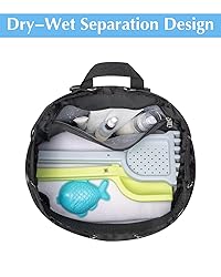 - Discover the ultimate all-in-one organizer for your active lifestyle. This oversized cinch sack (19”x14”x5.5”) is expertly designed with a fully sand-proof system, featuring a zippered drainage bottom and a breathable mesh shoe compartment that lets you shake sand out with ease. Keep wet and dry items perfectly separated with the dedicated PEVA wet pocket and multiple storage options, including two mesh side pockets and a secure back zip pocket for valuables. With its high-capacity, versatile design, this bag is your perfect companion for the beach, gym, pool, camping, and beyond.