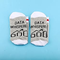 Material: 77% Combed cotton, 20% Cotton fiber and 3% Spandex. All products are made in a smoke free environment. Size: Unisex Socks, ONE SIZE FITS MOST: Fits women's shoe size 4-13/ men’s shoe size 5-12, there's no right or wrong way to wear them. Socks with saying: “DATA WHISPERER‘’. Perfect for data analysts, statisticians, scientists, and tech professionals. These socks will come to you nicely packed in a bag, which is strictly protected from any damage during transportation.