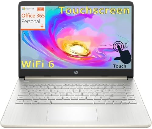 HP Touchscreen Laptop Computer for Student Home, 1-Year Office 365, 16GB DDR4 RAM, 512GB PCIe SSD, Intel Processor, 14", WiFi 6, Bluetooth, Webcam, Type-C, HDMI, Pale Gold, Windows 11 Home in S Mode