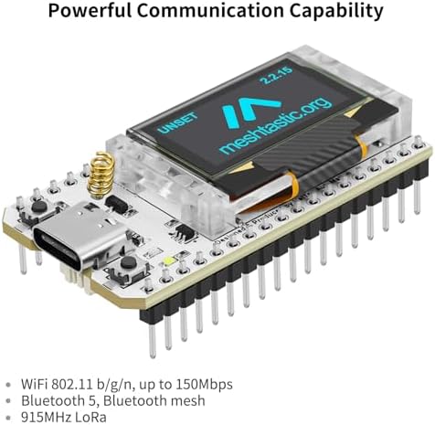 - Powerful Communication Capability: Integrated WiFi, LoRa, Bluetooth three network connections, onboard WiFi, Bluetooth dedicated 2.4GHz metal spring antenna, reserved IPEX (U.FL) interface for LoRa use. Integrated CP2102 USB to serial port chip, convenient for program downloading, debugging information printing