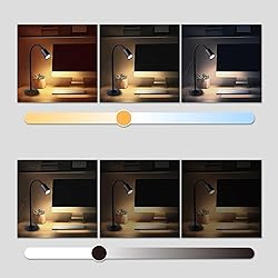ALL-IN-ONE LIGHTING MODES & BRIGHTNESS: This versatile LED desk lamp features 3 distinct color temperatures: Warm White (3000K) for relaxing sleep, Natural White (4000K) for reading, and Cool White (6500K) for intense focus. Combined with stepless dimming capabilities (up to 300 lumens), you can easily adjust the light intensity to suit various tasks, from late-night studying in a dorm room to working on a computer or doing detailed craft work without eye strain. FLEXIBLE GOOSENECK & COMPACT DESIGN: Equipped with a durable 360° flexible gooseneck, this standing table lamp allows you to twist and direct the light beam exactly where you need it. Its compact footprint and stable round base make it an ideal bedside lamp for small nightstands, crowded desks, or college dorm essentials, saving valuable space while providing ample illumination. SMART MEMORY FUNCTION & USB POWERED: No need to reset your preferences every time! The built-in intelligent memory function automatically recalls your last used color and brightness setting. The lamp is USB-powered with a long 78.74-inch cord, offering plug-and-play convenience via laptop ports, power banks, or 5V/1A wall adapters (adapter not included), making it a portable lighting solution for travel or moving between rooms. EYE-CARING & ENERGY EFFICIENT: Designed with high-quality LED beads, this reading light emits soft, flicker-free, and anti-glare light that effectively reduces blue light hazards. It provides a comfortable lighting environment for long hours of reading or working, protecting your vision. The 3W low power consumption makes it an eco-friendly choice for your home office or kids' room. EASY CONTROL & WIDE APPLICATION: The intuitive inline cord controller lets you switch power, change colors, and dim brightness with a simple press. This multipurpose lamp is perfect for a wide range of scenarios: use it as a keyboard light for late-night gaming, a book light for bedtime reading, a spotlight for video calls, or ambient lighting for the living room. It's a thoughtful gift for students, bookworms, and remote workers.