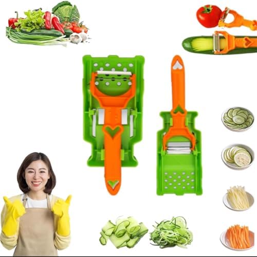 - 【Versatile 2-in-1 Kitchen Helper】:This multifunctional 2-in-1 pelador is your go-to tool for effortless prep. Its razor-sharp blade glides through apples, carrots, cucumbers, and potatoes, creating perfect, thin peels or shreds for salads in seconds. It’s the ultimate time-saver for any home cook looking to speed up their kitchen routine.