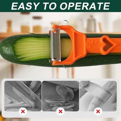 - 【Ultra Sharp & Safe to Use】:Safety meets efficiency with this vegetable peeler. The ultra-sharp stainless steel blades feature an anti-cut design to protect your fingers while providing maximum peeling power. It’s built to last, resists food sticking, and is dishwasher-safe for added convenience and durability.