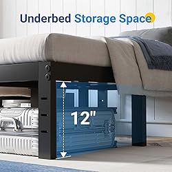 - Introducing the Avenco Metal Platform Bed Frame — designed for strength, stability, and modern style. Available in multiple heights (12", 14", 16", 18") and sizes (Twin, Full, Queen, King), this black steel bed frame provides reliable support while upgrading the look of your bedroom.Strong & Durable Support: Built with heavy duty steel slats and reinforced structure, this bed frame delivers excellent load capacity and prevents bending or sagging. Suitable for all mattress types, including memory foam, hybrid, latex, and innerspring.No Box Spring Needed: The platform bed frame doubles as both a foundation and frame, allowing you to place your mattress directly on top without an extra box spring.Quiet & Squeak-Free: Engineered for silent performance, the frame reduces noise and prevents squeaks. Floor-protecting leg caps help minimize friction and safeguard your flooring.Ample Under-Bed Storage: Choose from 12", 14", 16", or 18" height options to maximize clearance space. Perfect for storing boxes, bins, or seasonal items—ideal for apartments, dorms, or smaller rooms.Easy Assembly: Designed for quick, tool-free setup. All parts and instructions are included in one compact package for hassle-free assembly.Universal Fit & Modern Design: Offered in Twin, Full, Queen, and King sizes, this sleek black frame blends effortlessly with any décor, providing both functionality and style.Choose the height and size that best suits your needs and enjoy a stable, durable, and stylish foundation with the Avenco Metal Platform Bed Frame.