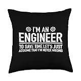 Funny Engineer Saying I am An Engineer to Save Time Let's just assume that i'm never wrong. An ideal gift for all engineers, engineers and engineering students who love technology. 100% spun-polyester fabric Double-sided print Filled with 100% polyester and sewn closed Individually cut and sewn by hand Spot clean/dry clean only