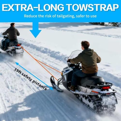 - 【Snowmobile Tow Straps Kit】 You will receive 2 Pcs snowmobile tow straps and 2 Pcs screw locking carabiner, with a working length of 19feet. It's very convenient to drag and transport snowmobiles on the snow or when you are stuck at the bottom of mud, ditches or slopes, use them to quickly and easily tow your all-terrain vehicle out
