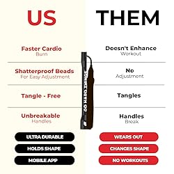 FULL-BODY FITNESS TOOL - Whether you're training speed, agility, or endurance, our beaded ropes deliver efficient cardio, stronger bones, and full-muscle engagement—on or off the mat. MASTER YOUR RHYTHM FAST - Our beaded jump ropes provide audible feedback, helping you build timing, cadence, and confidence with every jump. Perfect for developing consistent form quickly. BUILT TO LAST - Designed for serious athletes, our ropes feature 5" virtually unbreakable handles and durable 1" shatterproof beads—ready for indoor or outdoor use. CUSTOM FIT WITH EASE - Easily adjust your rope to fit jumpers up to 6'4". Just trim the cord and remove beads to dial in your ideal length—no tools required. ELITE JUMPS - Here at Elite Jumps, our purpose is to help people develop a healthy, lifelong skill in jump rope. We are equipping people with great jump ropes, educating on how to use them, and encouraging them to “Do Hard Things”.
