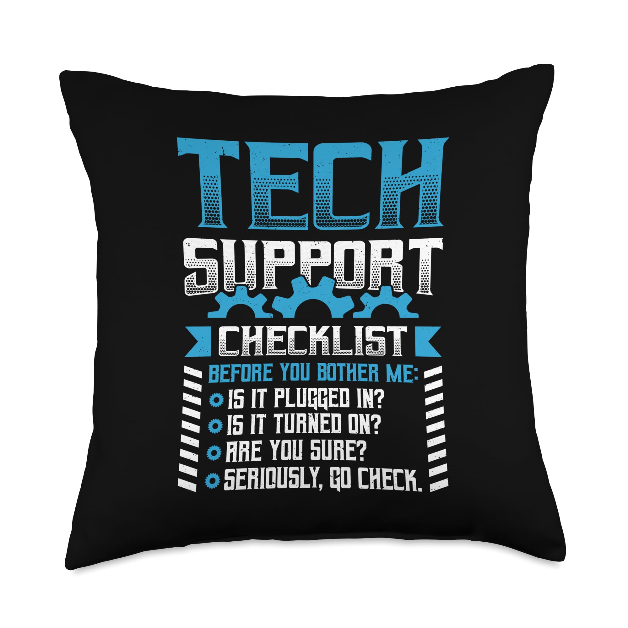 - Funny outfit for technical support staff. The motif shows the typical questions that every IT support employee asks when something doesn't work. Humorous saying for all IT people. Funny design for work colleagues from the IT department and computer-savvy people. Is the device plugged in and switched on? Many problems can be solved with this question. This Funny Tech Support Checklist Helpdesk item is designed by Tech Support Hotline Nerd Gifts for Men and Women.