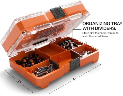 - ORGANIZING TRAY WITH DIVIDERS: Store fasteners, bits, wire nuts, and other small items within different sections of the case
