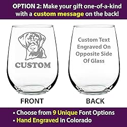 Fun wine glass gift for anone that loves their labrador High quality, large 17 ounce stemless wine glass Etched text (not printed) - The design is engraved by hand in the USA and will never wear off. Individually boxed glasses designed to ensure safe delivery of your glasses. Dishwasher safe! Great for daily use.
