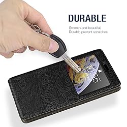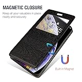 Shantime Viewable Window Leather Flip Case Compatible with Oukitel WP60, Elegant Design Clear Display Invisible Magnetic Cover and Card Slot(Black)