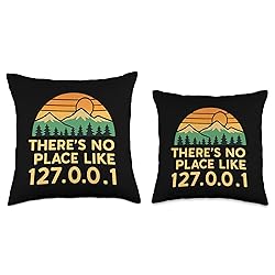 Funny programmer joke saying there's no place like 127.0.0.1 ( home ). Perfect for programmers, coders, and software developers who enjoy a humorous take on debugging, coding, and tech life. A fun way to show passion for technology and computer science. Great for anyone in the tech world, whether engineers, students, or IT professionals who appreciate clever designs that highlight coding humor and spark conversation. 100% spun-polyester fabric Double-sided print Filled with 100% polyester and sewn closed Individually cut and sewn by hand Spot clean/dry clean only