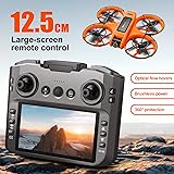 【4.92-Inch Large Screen Remote Control, Real-Time Transmission with No Delay】 4.92-inch HD display for live video feed, providing intuitive control. Optical flow positioning + 6-axis gyroscope ensures stable flight without drifting. 【Dual HD Cameras + 50x Zoom, Capture Stunning Aerial Shots】 Equipped with dual cameras and 50x digital zoom , capturing both distant and close-up details. EIS (Electronic Image Stabilization) for smooth footage, plus gesture control for easy photo/video recording. 【Powerful Brushless Motor + 360° Protection, Safe & Durable】 Brushless motor delivers strong power and wind resistance for longer flight time. Full 360° propeller guards prevent collisions, ideal for beginners and indoor flying. 【Smart Controls, One-Touch Aerobatic Flight】 One-key takeoff/landing, emergency stop, and 3-speed adjustment for easy operation. 360° flips, waypoint flight, and gravity-sensing control for exciting flying experiences. 【Bright LED Lights + Headless Mode, Fly Anytime, Anywhere】 High-brightness LED lights for clear visibility in dark environments. Headless mode + smart positioning ensures precise control even for directionally challenged pilots. 【Complete Accessories Kit, Ready to Fly】 Includes 2× 1800mAh batteries, Type-C fast charging cable, 8GB memory card + card reader . Comes with a screwdriver and dual manuals for easy maintenance.