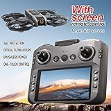 RC Drone With Screen On Controller (4.92in), UHD Dual Camera, Brushless Motor, Optical Flow Hovering, 360° Propeller Guard, 6-Axis Gyro, Headless Mode, One-Key Takeoff/Landing, 3-Speed Adjustable, 50X Zoom, Gesture Control, Trajectory Flight, Night LED, 2Batteries, 8GB Card, Beginner-Friendly FPV Remote Control Plane Copter Quadcopter (Gray)
