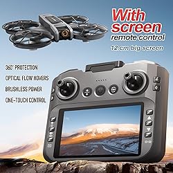 - RC Hobby Drone with Screen Display Remote Control 4.92-inch Large Screen Dual-Camera Drone with Powerful Brushless Motor for Smart Flight ExperienceThis high-performance drone comes with a 4.92-inch large-screen remote controller , supporting real-time image transmission for an immersive flying experience. Equipped with dual cameras , it enables gesture photo/video capture and auto-shooting modes , making it easy to capture stunning aerial shots!Key Features:✔ Powerful Brushless Motor + 360° Propeller Guards – Strong thrust, stable flight, and enhanced safety.✔ Optical Flow Positioning + 6-Axis Gyroscope – Precise hovering and smooth, drift-free control.✔ One-Key Smart Operations – One-key takeoff/landing, emergency stop, and 3-speed adjustment, perfect for beginners.✔ 360° Flips & Multiple Flight Modes – Headless mode, waypoint flight, gravity sensing, and gesture control for diverse flying fun.✔ Bright LED Navigation Lights – Fly with confidence even in low-light conditions.✔ Dual-Battery Long Flight Time – Includes two 1800mAh batteries for extended flight sessions.Package Contents:【Drone ×1】【4.92-inch Remote Controller ×1】【Battery ×2】【Type-C Charging Cable ×1】【Screwdriver ×1】【User Manual ×2】【8GB Memory Card ×1】【Spare Propellers ×2】【Carrying Case ×1】