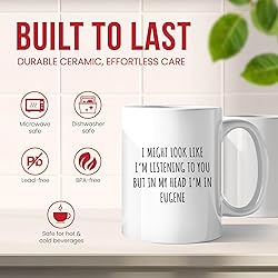 I'm Thinking About Eugene Mug - Oregon City Coffee Cup - Track Town Funny Gift From - Willamette Valley Tea Mugs - Outdoor Adventure Cups - 11 Oz Ceramic Gifts For Residents, Birthday, Him, Her