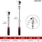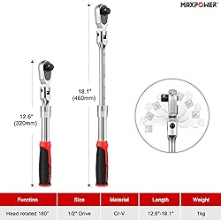 MAXPOWER Flexible Head 1/2" Drive Socket Wrench, Quick Release 72-Tooth Reversible Ratcheting Feature, Extendable Handle (12.6" - 18.1" Length)