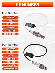 Fitment: Oxygen Sensor Compatible with Chevy: Silverado 1500 4.3L 5.3L 6.2L 2014-2017, Suburban 5.3L 2015-2018, Tahoe 5.3L 2015-2018. Compatible with GMC: Sierra 1500 4.3L 5.3L 6.2L 2014-2017, Yukon XL 5.3L 6.2L 2015-2018. Compatible with Cadillac: Escalade 2015-2018 Part Number: Upstream Oxygen Sensor OE: 234-4940, 12666612, 21581, F00HL00421, 18187, 12657188; Downstream Oxygen Sensor OE: 234-4974, 12655678, 21075, 12661898, 12643708, F00HL00410, 18054 Built for Long-Lasting Reliability: Manufactured with high-quality materials, anti-corrosion stainless steel bodies, and heat-resistant wiring to withstand extreme exhaust temperatures and tough driving conditions Plug & Play Installation: Pre-coated threads and OEM-style connectors ensure an easy, hassle-free installation. Just remove the old sensors and plug in the new ones—no splicing or custom wiring needed Tips: Please verify the original connector before purchasing to ensure compatibility with this product. Make sure your car model is supported. If you have any questions, feel free to contact us