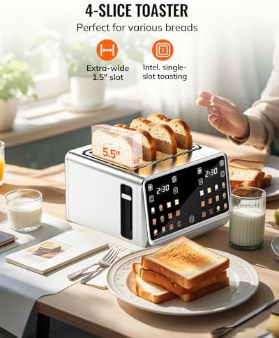 Toaster 4 Slice with TouchScreen, Memory Function & Single-Slot Focus, Keenstone 1800W Smart Digital Toaster for Ultimate Control, Wide Slot to Reheat & Defrost Bagels, Bread, Waffles, Stainless Steel