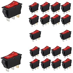 20PCS KCD3 Red Light Illuminated Square Toggle Switch AC 250V/16A 125V/20A KCD3 Mini Boat Switch 3 Pin 2 Position Rocker Switch Rocker Toggle Switch for Cars Auto Boat
