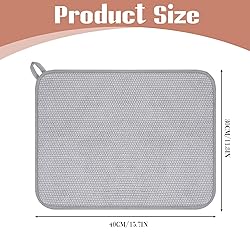 Ultra Absorbent: Our small dish drying mat is made from high-quality microfiber, quickly soaking up excess water from dishes, glasses, and utensils, keeping your kitchen countertops dry and clean Quick Drying: Thanks to advanced microfiber technology, this small drying mat dries rapidly. Use it repeatedly without worry, ensuring a fresh and hygienic kitchen environment Non-Slip Reversible: The non-slip backing keeps the dish drying mat securely in place on your countertop, while its reversible design offers flexibility and convenience for everyday use Compact Convenient: Measuring 15.74 x 11.8 inches, this dish drying mat small is perfect for compact spaces. It folds neatly for easy storage, making it an ideal choice for any kitchen setup Easy to Clean: Maintain the longevity of your drying mat by hand washing or machine washing with cold water. Hang to dry for best results, ensuring a durable and reliable kitchen accessory