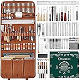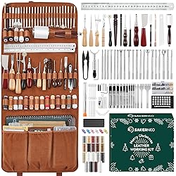 [YOUR COMPLETE PORTABLE LEATHER WORKSHOP] This professional leather tooling kit is meticulously curated by master craftsmen, featuring oversized cutting mats and engraving mats to protect your workspace. Everything you need for carving, stamping, and stitching is organized in a custom, portable handbag. This ultimate leather working kit empowers both beginners and pros to create anywhere, turning any space into a professional studio. [FORGE LEGACY-QUALITY CREATIONS WITH PRECISION] Experience unmatched durability and razor-sharp precision. Every tool in this leather crafting kit, from stamping tools to hollow punches, is forged from high-quality steel and rigorously tested. This leather tool set is built for heavy-duty use, giving you the confidence to tackle any project—from simple repairs to high-quality bags and belts—knowing your tools won't fail. [UNLEASH BOUNDLESS CREATIVITY & SKILL] Go from idea to masterpiece with one fully-stocked leather working kit. This comprehensive collection includes 52 stamp patterns, multi-size punches, wax threads in 15 colors, and sanding tools. This complete leather tooling kit eliminates creative limits, allowing you to master techniques from basic sewing to complex decorative stamping and build your skills with every project. [THE ULTIMATE GIFT OF CRAFTMANSHIP & MINDFULNESS] Offer the profound satisfaction of creating with your hands. This premium leather tool set is the perfect gift for family and friends, providing a tactile escape from digital life. The process of engraving and stamping becomes a mindful, stress-relieving ritual, fulfilling a deep need for focus and tangible accomplishment that mass-produced items cannot match. [ORGANIZED FOR EFFORTLESS WORKFLOW & MASTERY] Achieve professional-level organization with a custom-designed storage system. This leather crafting kit features a dedicated spot for every tool, from awls to creasers, keeping your workspace tidy and efficient. The portable handbag design ensures your leather craft tools are always protected, instantly accessible, and ready to inspire your next creative session.