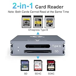 【Do More of What You Love】Because the 3.2 Gen 2 CFexpress Type B and SD dual-slot memory card reader transfers your data at lightning speed - up to 1.25GB/s (10Gb/s), you can spend more time creating and less time waiting on downloads. (Note: both cards cannot read simultaneously) 【Specially Designed for CFexpress Type B Card】This card reader is specially designed for the CFexpress (Type B) memory card. Provide great convenience for those who love photography or videography and use CFexpress card. 【SD Card Compatibility】Not only compatible with CFexpress Type B Card, but also work with SD, SDXC, SDHC, UHS-I Cards for your convenience. Plug & play, hot-swapping capability, easy and convenient to carry and use for photographer and videographer. 【Board Compatibility】Compatible with most systems such as Windows XP/Vista/7/8/8.1/10/11, Mac OS, Linux, Chrome OS, Android. Also this CFexpress card reader is compatible with most devices--not only USB type C device but also USB A device. 【What You Will Get】1 x CFexpress Type B & SD3.0 Card Reader, 1 x USB-C TO C Cable ,1 x USB-C TO A Cable, 1 x User Manual, 1-year and friendly customer service. Please feel free to contact us at any time.
