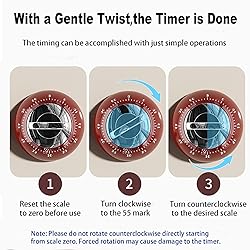 【FEATURING A MAGNETIC BACK】:This wind up timer for cooking offer unparalleled convenience by easily adhering to any metal surface,whether it's fridge, refrigerator, or microwave oven. This feature of our magnetic timer ensures it is always within easy reach, allowing you to monitor cooking times effortlessly, exactly where you need it most. Beyond the kitchen, this magnetic kitchen timer is ideal for various users, such as timers for kids, parents, teachers, and office professionals. It serves as an excellent study timer for students, providing reliable and accessible timing for all your needs, whether in the kitchen, classroom, or office. 【No Battery Required & Easy to Use】:The mechanical kitchen timer doesn't require any batteries, it is energy saving and eco-friendly. Just wind it up and set time, it will work, showcasing its commitment to energy efficiency and environmental sustainability. It is small and compact, you can carry it with you anywhere. After fully winding, it can maintain a ringtone for about 3 to 4 seconds, giving you a timely reminder. This magnetic clock timer ensures that you stay on track with your fitness routine without missing a beat. 【HIGH-QUALITY MATERIAL】:The kitchen timer is constructed from premium ABS material, renowned for its exceptional durability and resistance to corrosion. The ABS exterior of these timers for cooking not only lends a contemporary aesthetic appeal but also ensures robust protection against water and corrosion, making it ideal for use in the bustling kitchen environment. This round design of this desktop timer is not only visually appealing but also enhances the timer’s functionality. From its durable construction to its sleek design, Our Cooking timers for kitchen with alarm embodies both style and substance. 【Wide Application】:This 60 minute wind up timer can be applied on different occasions. Such as you use at home, in the kitchen, at school, in the classroom, and at work. This kitchen timer cooking is meticulously crafted to deliver unparalleled accuracy and reliability. Whether you’re cooking, baking, reading, doing homework, exercising, or managing special needs, this versatile classroom timer is the perfect companion. Its user-friendly design and precise timing make it easy to maximize productivity and efficiency in every area of your daily routine, ensuring you stay on track with confidence. 【Instruction Manual】:Make sure to turn clockwise to 55 and not exceed 0 firstly each time. Then turn counter-clockwise to the time required ,there are above 3 second alarm sound when timeis. NOTE:Do not turn counter-clockwise directly from 0 to keep timer from damaging,Use soft dry fabric to clean the timer. Do not dip in the water. 【Quality & Service Satisfaction】:We always take quality and service as our business philosophy, we believe you will like our products, If you have any questions or concerns, please don't hesitate to reach out to us. Our dedicated team will respond promptly and provide a satisfactory resolution or compensation within 24 hours, ensuring a positive experience with every purchase.