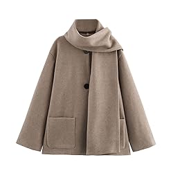 Women Oversized Scarf Jacket Wool Blend Long Sleeve Button Down Coat with Pockets Winter Warm Shawl Fashion Peacoat